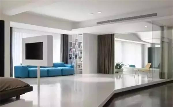 在客廳,一張素色的自流坪地面,搭配素面朝天的白墻、簡簡單單的一張軟沙發(fā),隨便鋪一張地毯,剛?cè)岵?jì)之美盡顯。